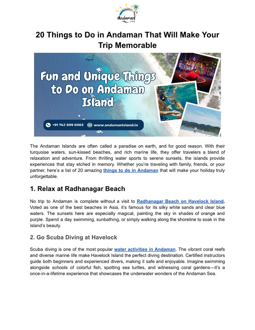 20 Things to Do in Andaman That Will Make Your Trip Memorable