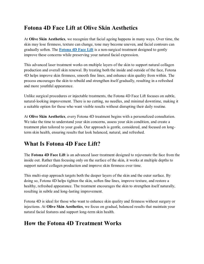 Fotona 4D Face Lift | Non-Surgical Facial Rejuvenation – Olive Skin Aesthetics