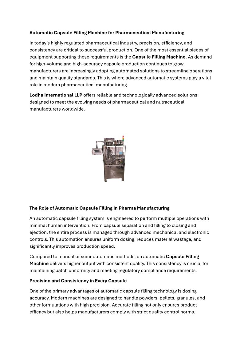 Automatic Capsule Filling Machine for Pharmaceutical Manufacturing
