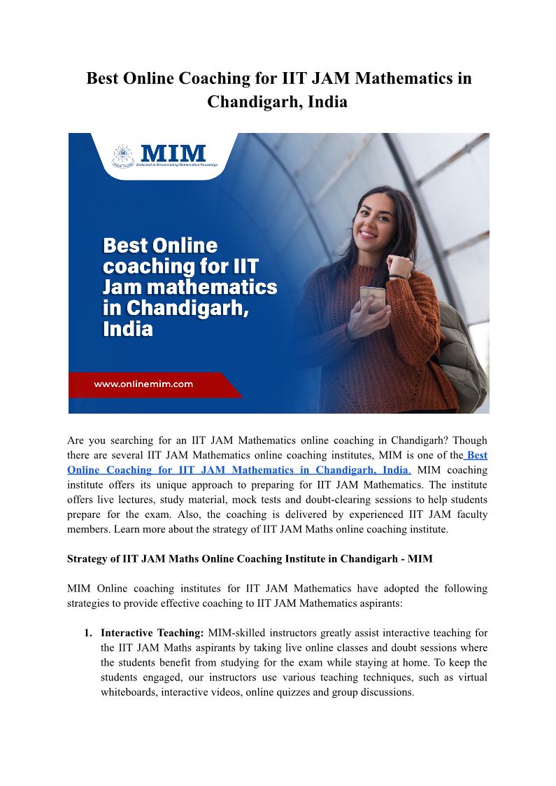 Best online coaching for iit jam mathematics in Chandigarh, India