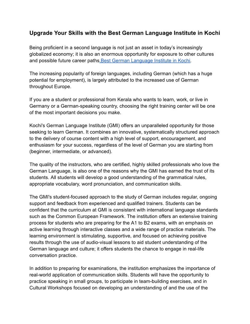 Upgrade Your Skills with the Best German Language Institute in Kochi