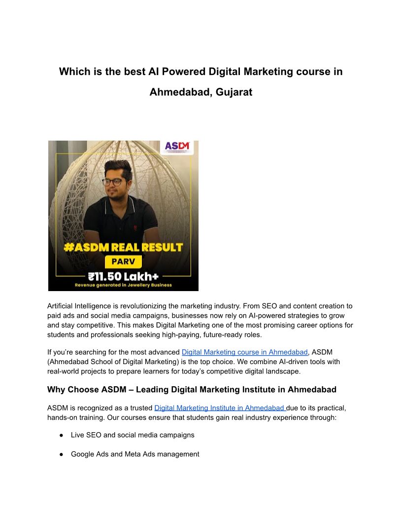 Which is the best AI Powered Digital Marketing course in Ahmedabad, Gujarat
