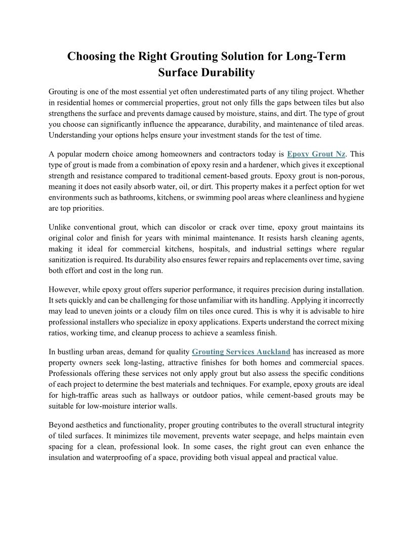 Choosing the Right Grouting Solution for Long-Term Surface Durability