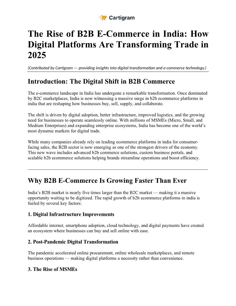 B2B E-Commerce Growth in India – Insights by Cartigram