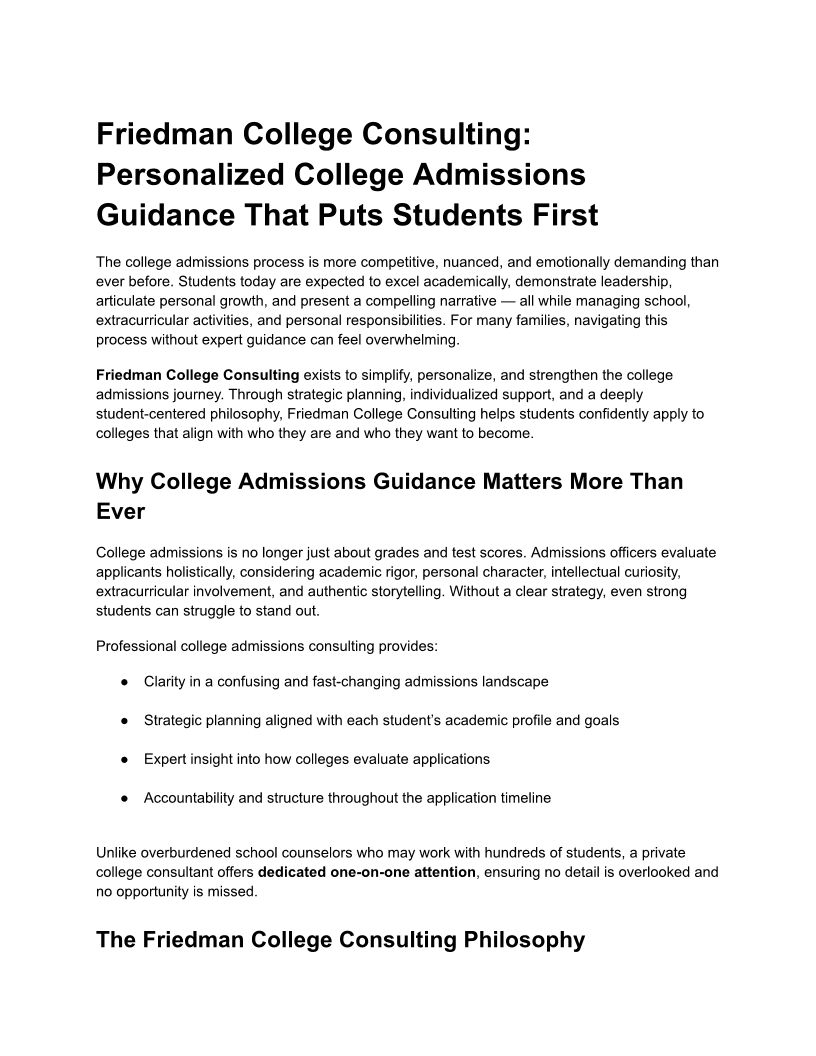 Friedman College Consulting_ Personalized College Admissions Guidance That Puts Students First