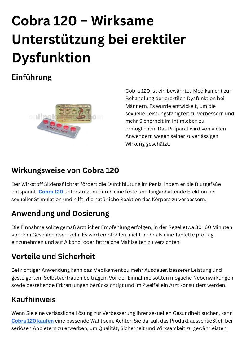 Cobra 120 – Wirksame Unterstützung bei erektiler Dysfunktion