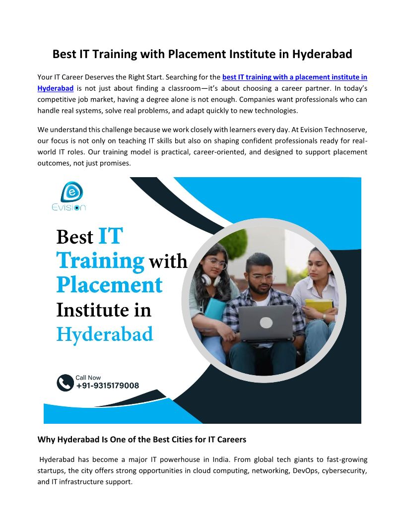 Best IT Training with Placement Institute in Hyderabad - Evision Technoserve