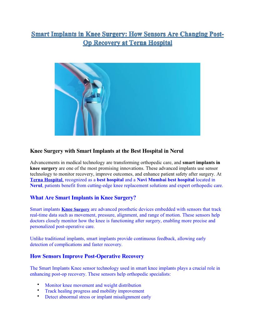Smart Implants in Knee Surgery at the Best Hospital in Navi Mumbai