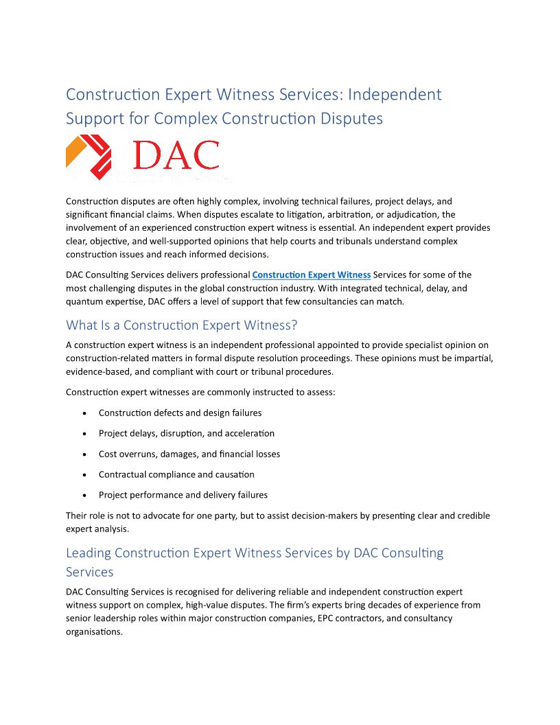 Construction Expert Witness Services: Independent Support for Complex Construction Disputes