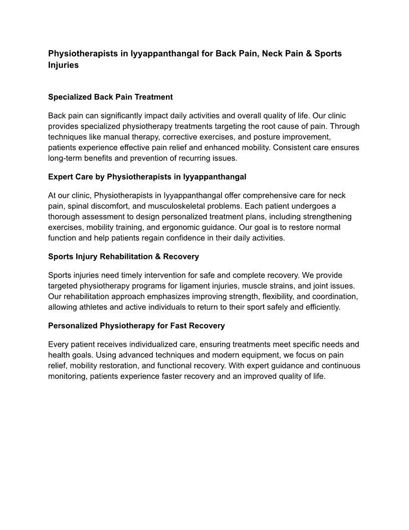 Physiotherapists in Iyyappanthangal for Back Pain, Neck Pain & Sports Injuries