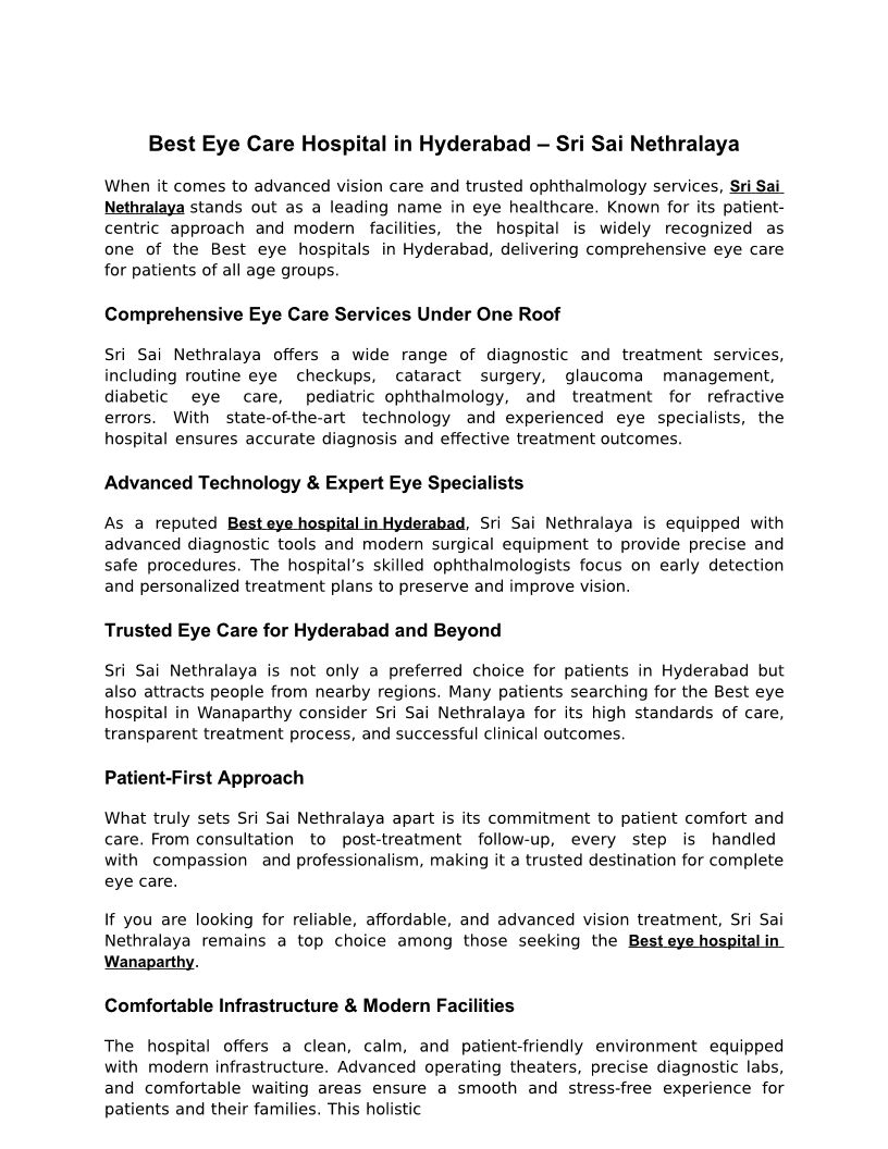 Best Eye Care Hospital in Hyderabad – Sri Sai Nethralaya