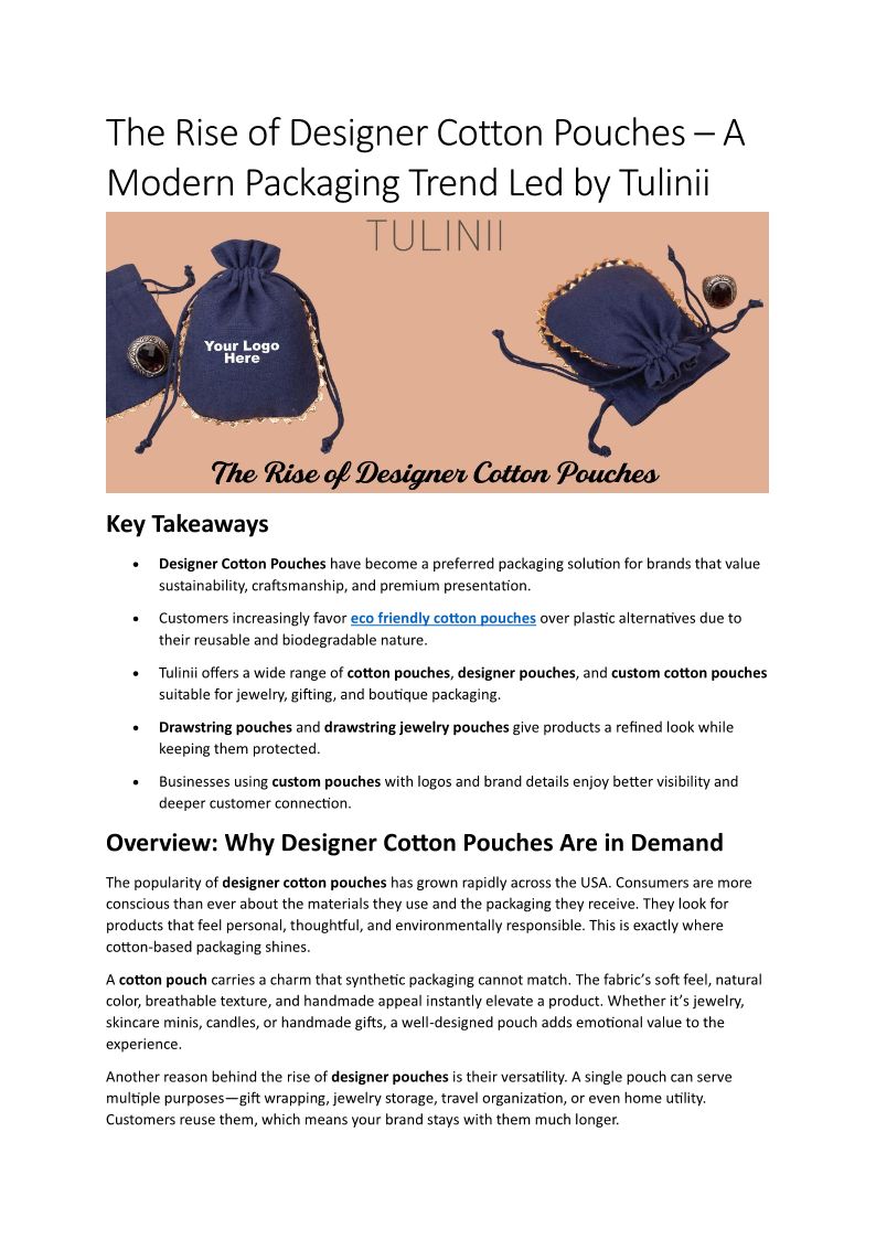 The Rise of Designer Cotton Pouches – A Modern Packaging Trend Led by Tulinii