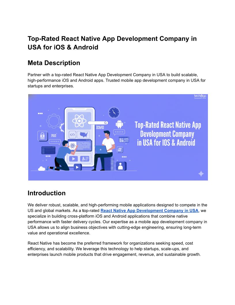 Top-Rated React Native App Development Company in USA for iOS & Android