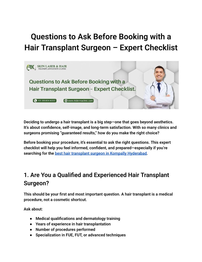 Questions to Ask Before Booking with a Hair Transplant Surgeon – Expert Checklist