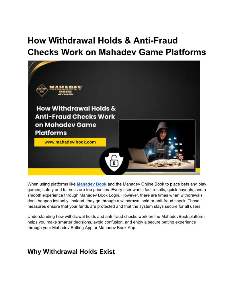 How Withdrawal Holds & Anti-Fraud Checks Work on Mahadev Game Platforms