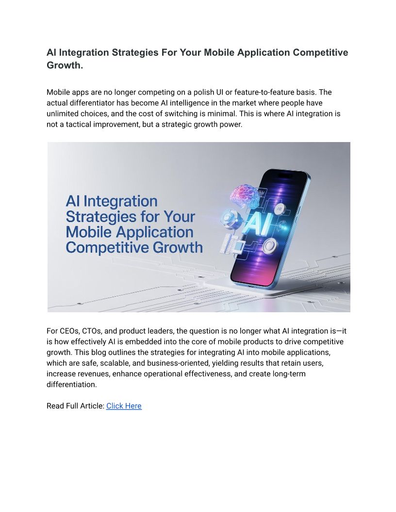 AI Integration Strategies For Your Mobile Application Competitive Growth.