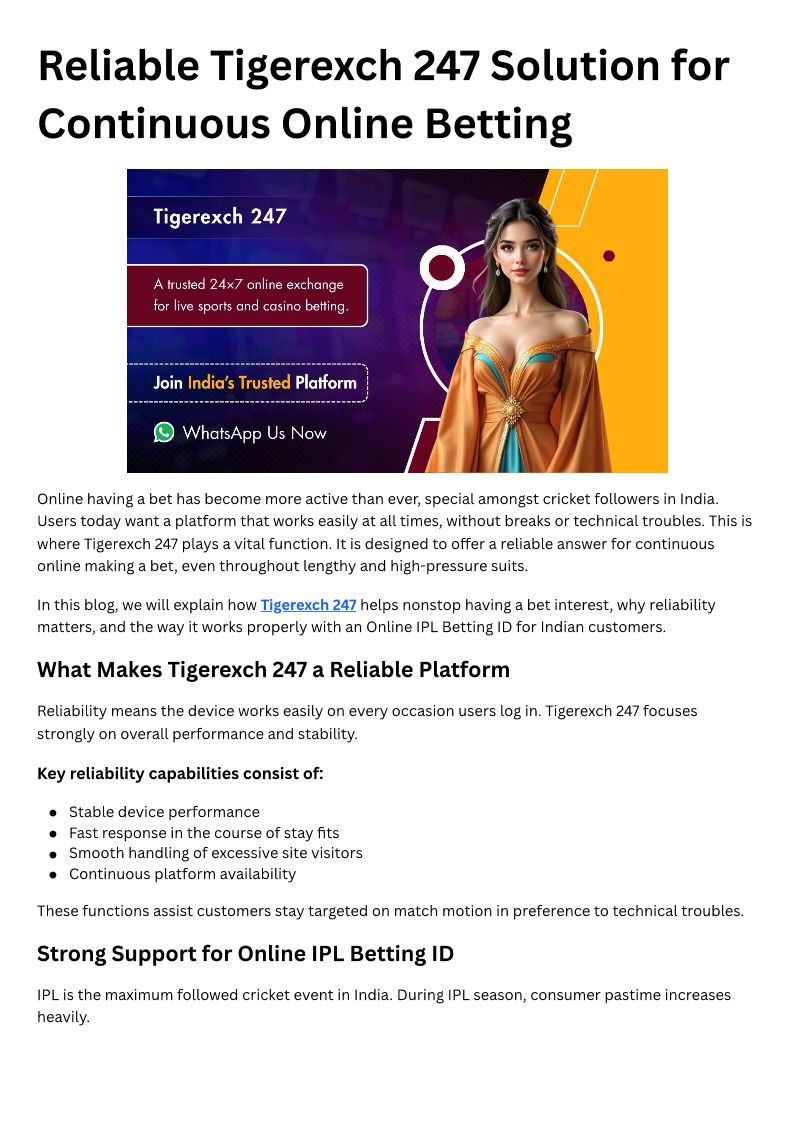Reliable Tigerexch 247 Solution for Continuous Online Betting