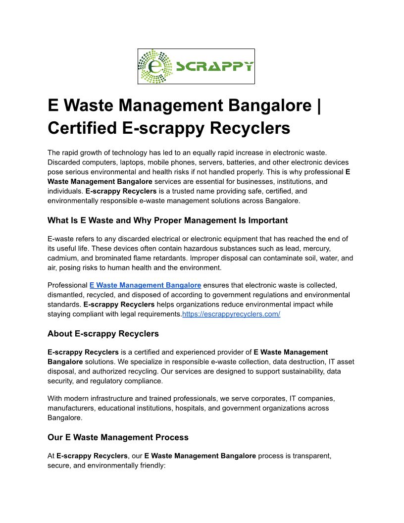 E Waste Management Bangalore _ Certified E-scrappy Recyclers