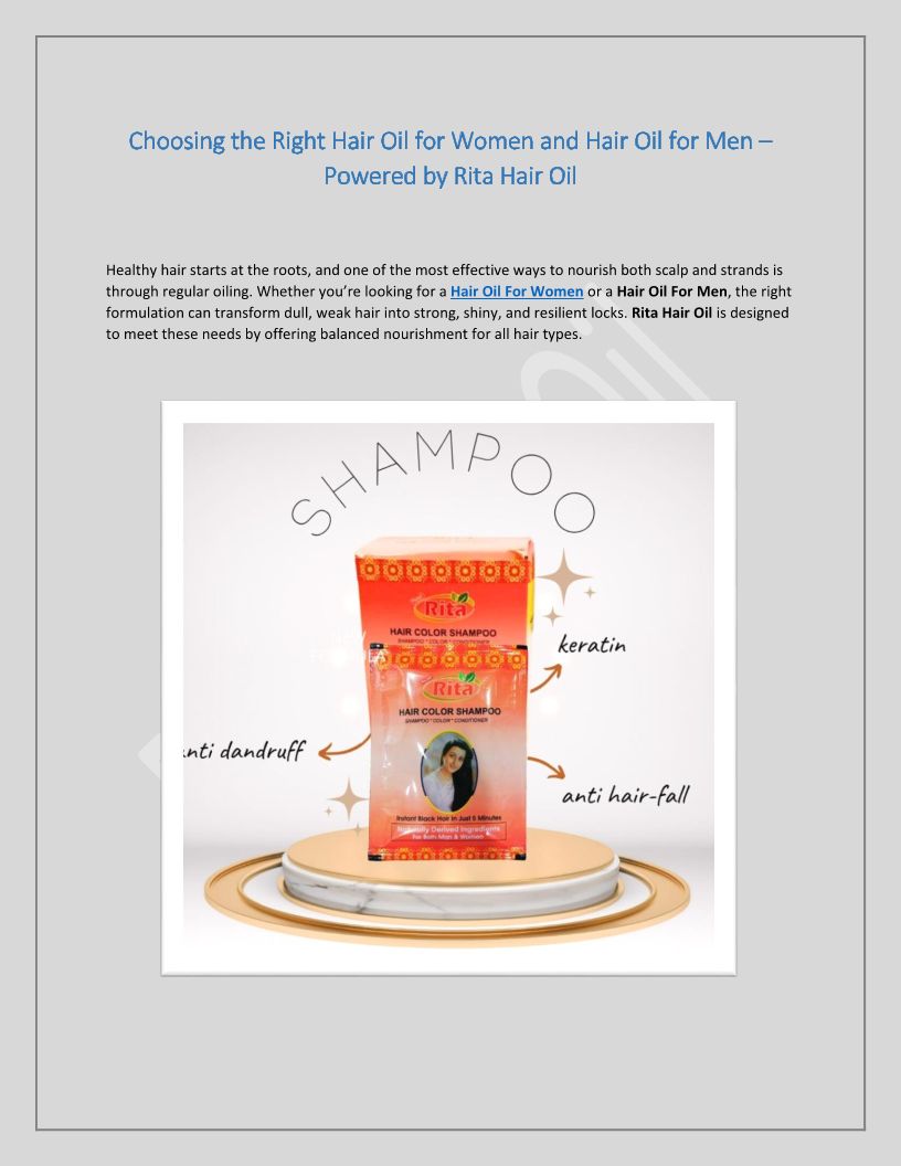 Choosing the Right Hair Oil for Women and Hair Oil for Men – Powered by Rita Hair Oil