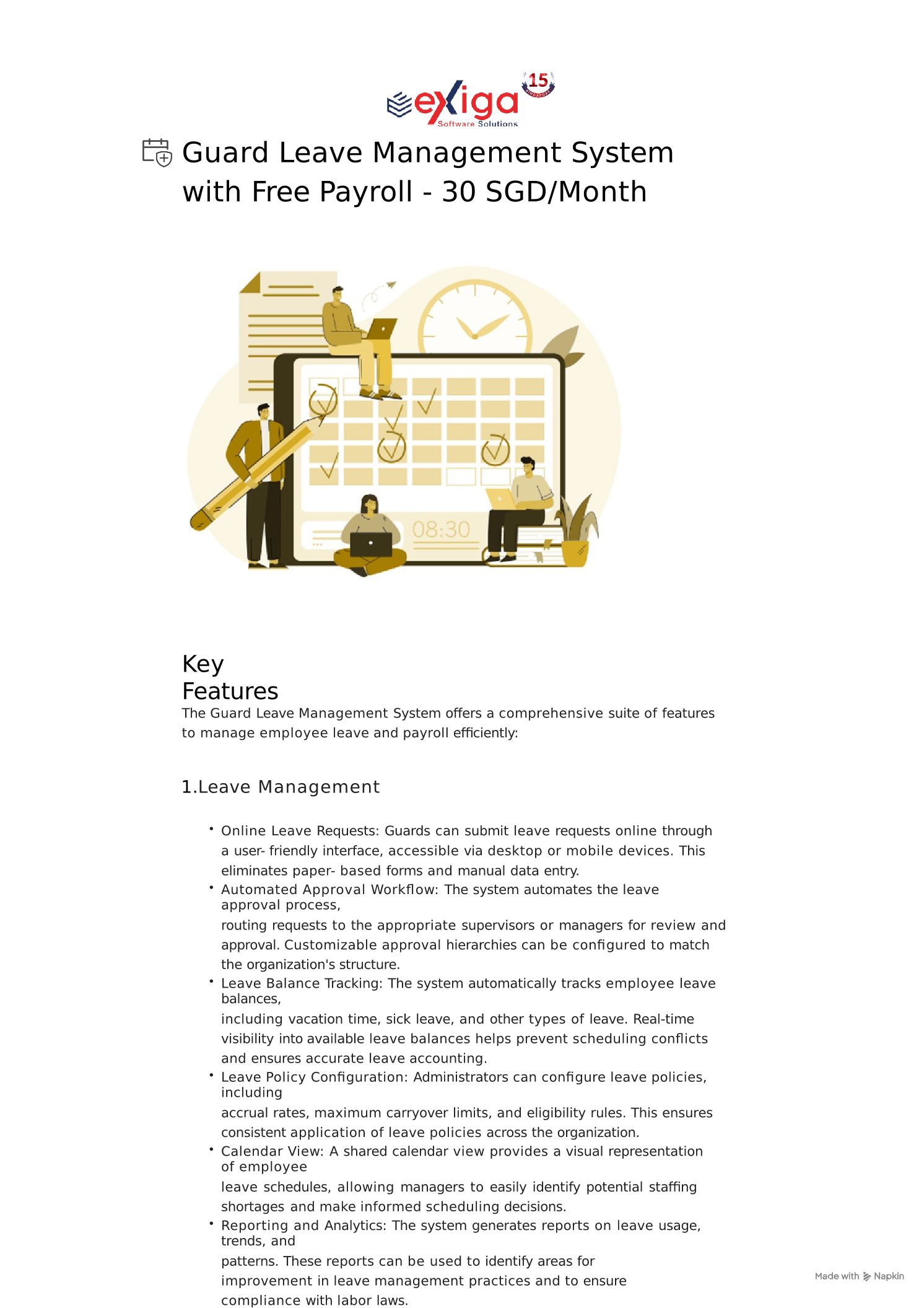 Guard Leave Management System with Free Payroll - 30 SGD_Month