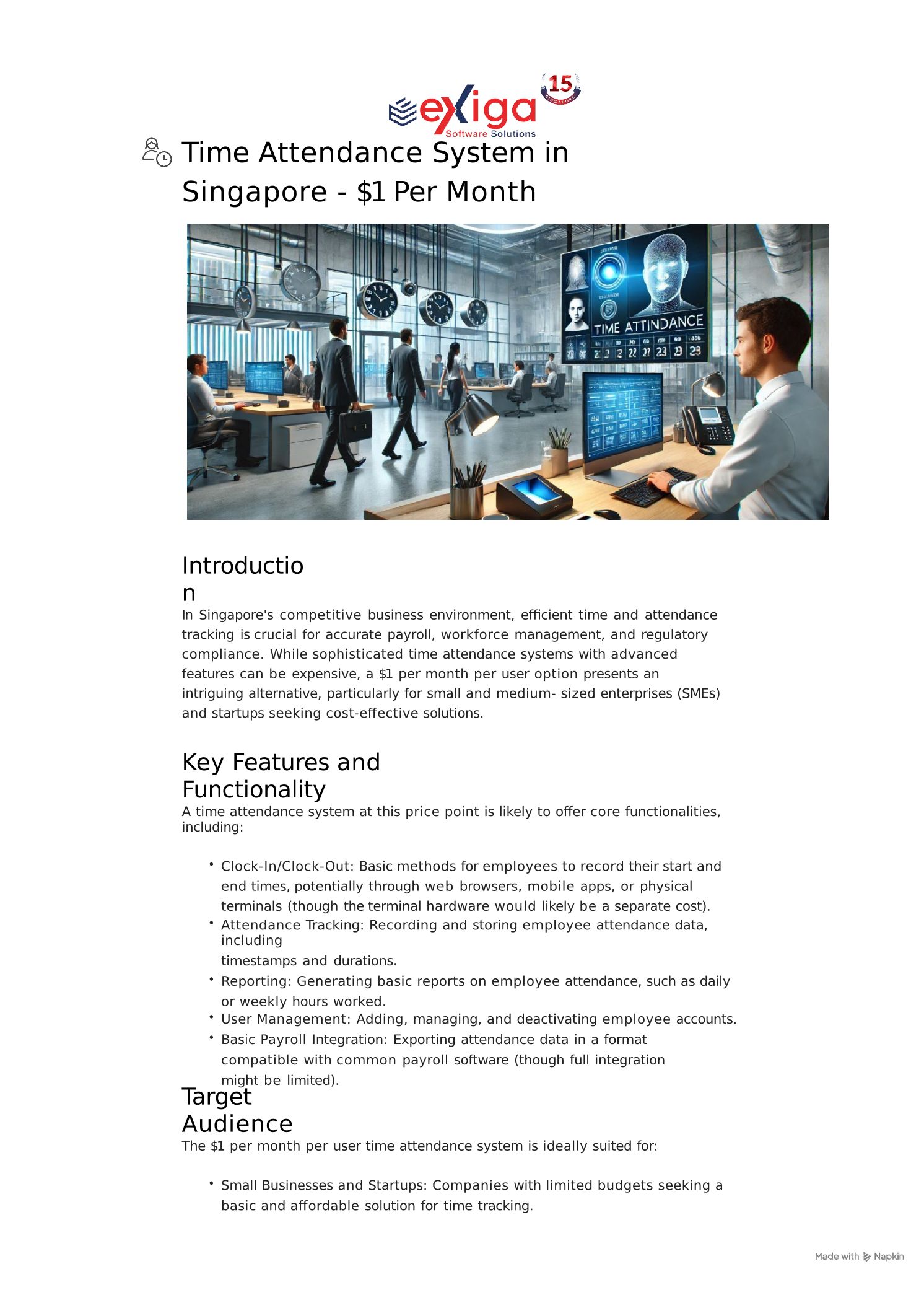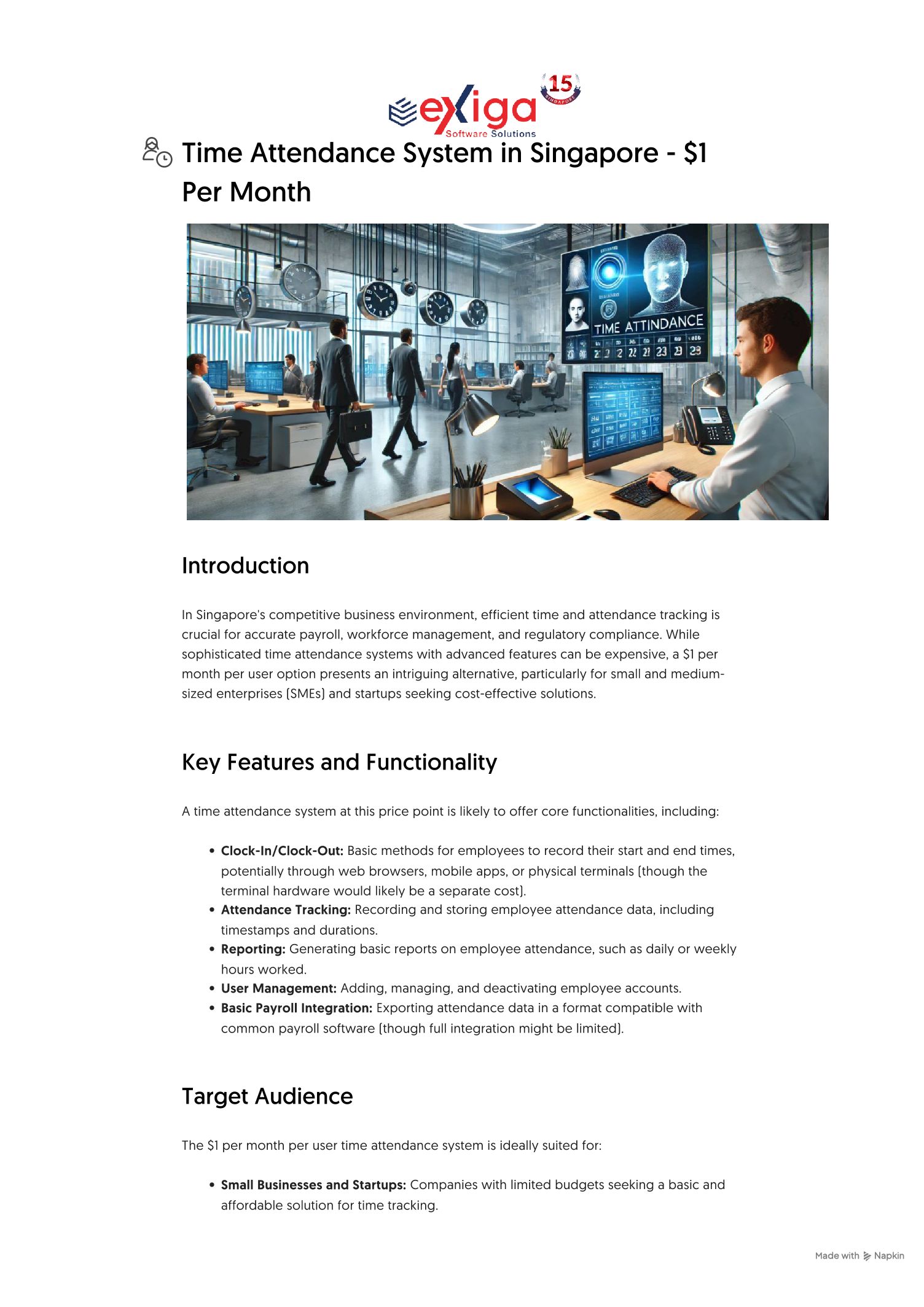 Time Attendance System in Singapore - $1 Per Month