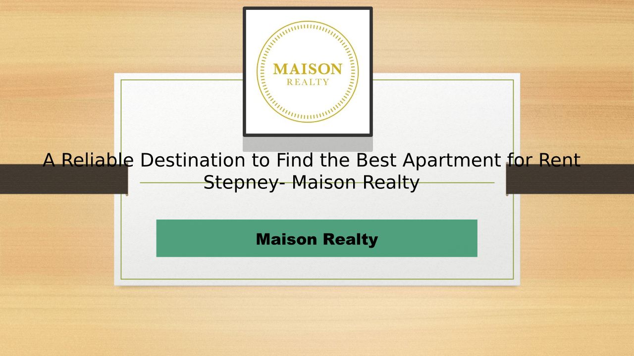 A Reliable Destination to Find the Best Apartment for Rent Stepney- Maison Realty