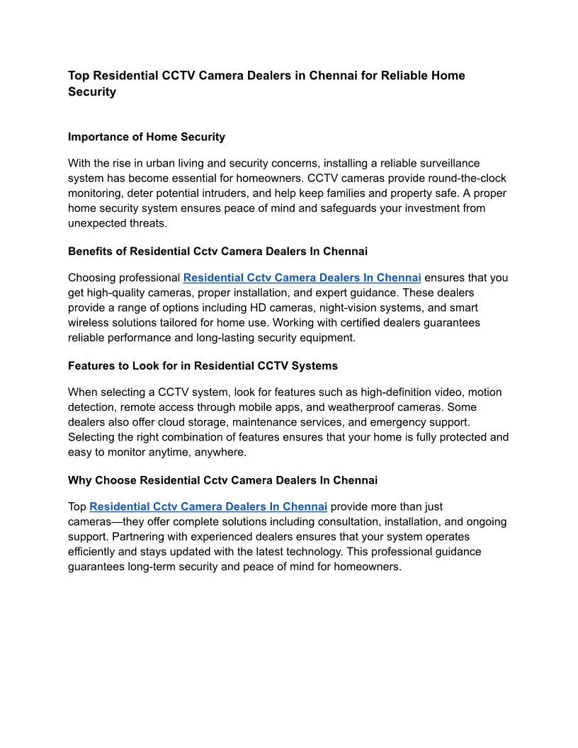 Top Residential CCTV Camera Dealers in Chennai for Reliable Home Security