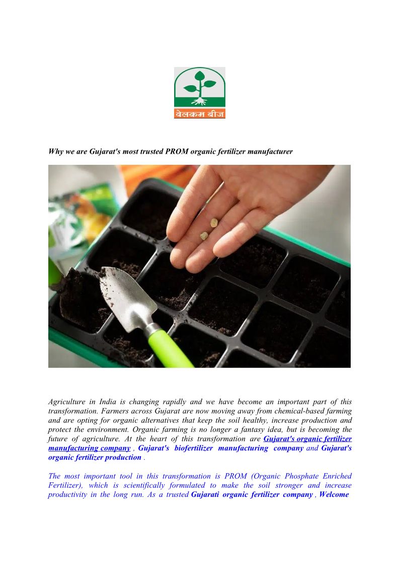 Gujarat’s Most Reliable PROM Organic Fertilizer Manufacturer – Why Choose Us
