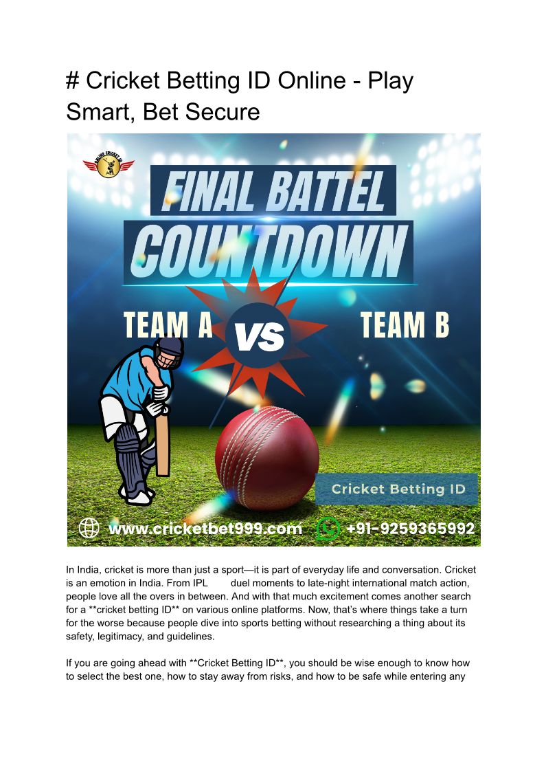 # Cricket Betting ID Online - Play Smart, Bet Secure