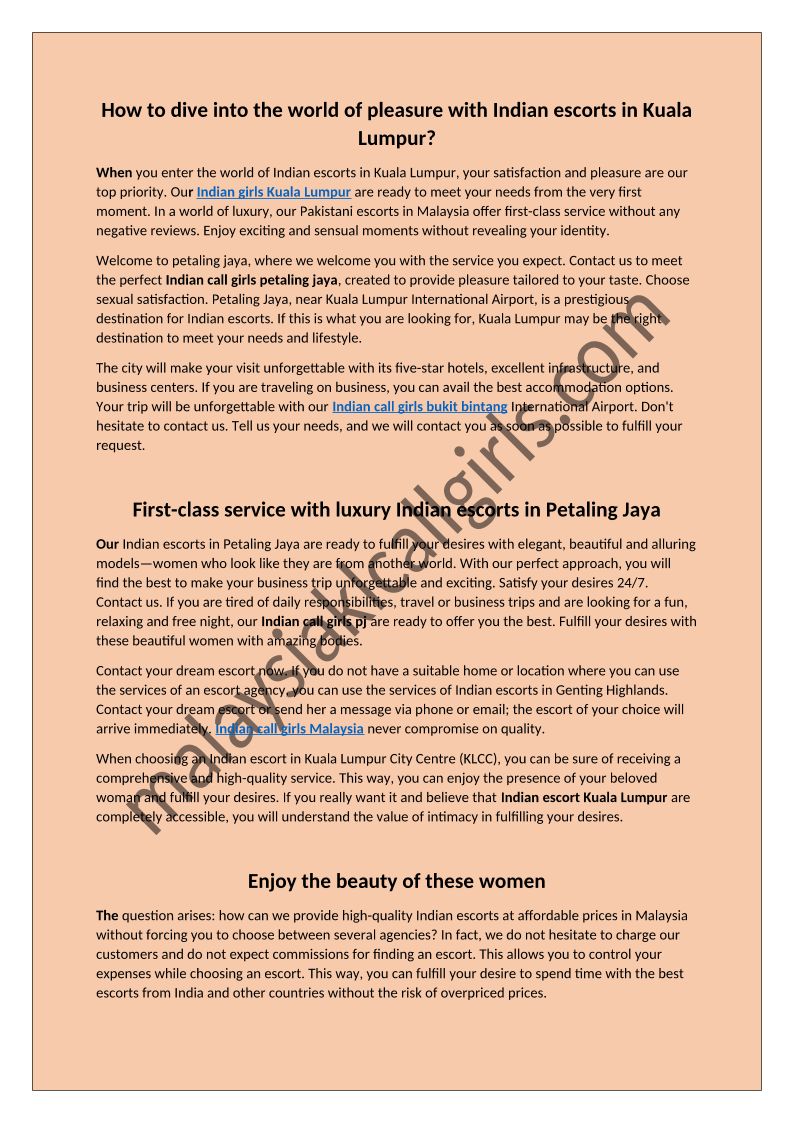 How to dive into the world of pleasure with Indian escorts in Kuala Lumpur