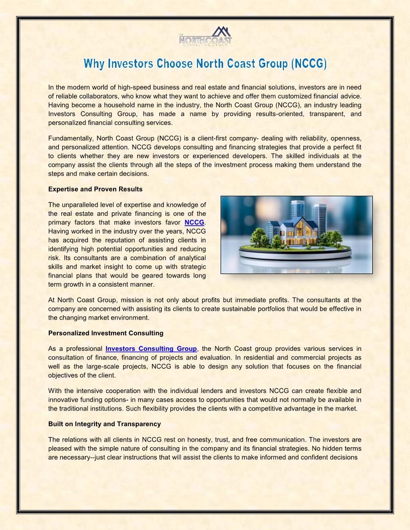 Why Investors Choose North Coast Group (NCCG)
