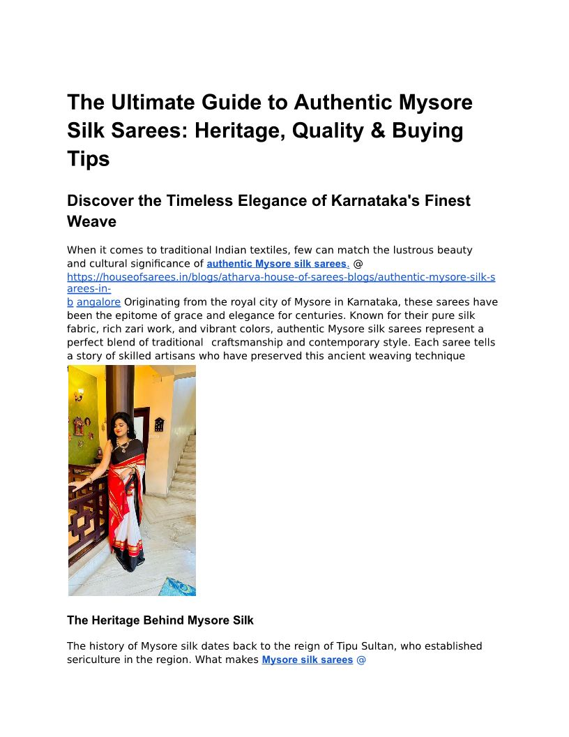 The Ultimate Guide to Authentic Mysore Silk Sarees_ Heritage, Quality & Buying Tips
