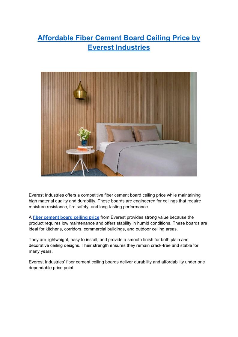 Affordable Fiber Cement Board Ceiling Price by Everest Industries