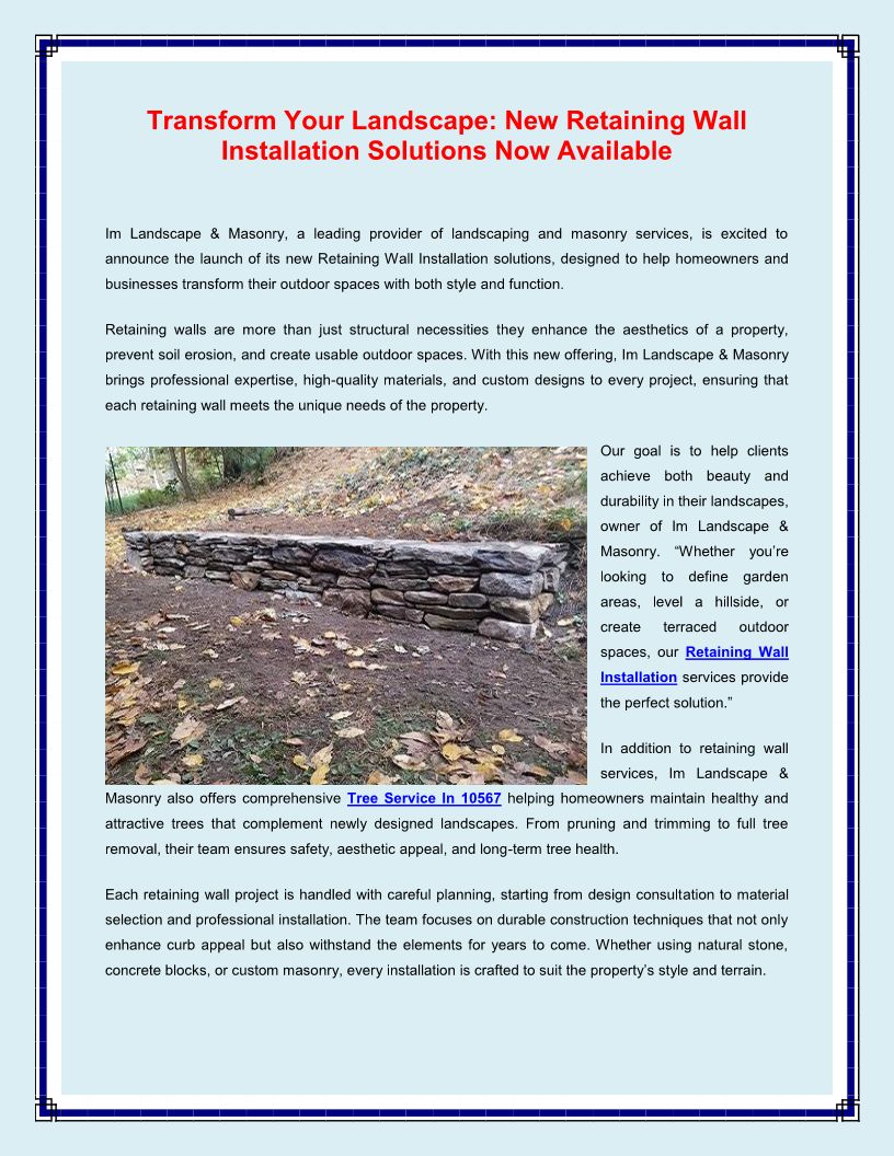 Transform Your Landscape New Retaining Wall Installation Solutions Now Available