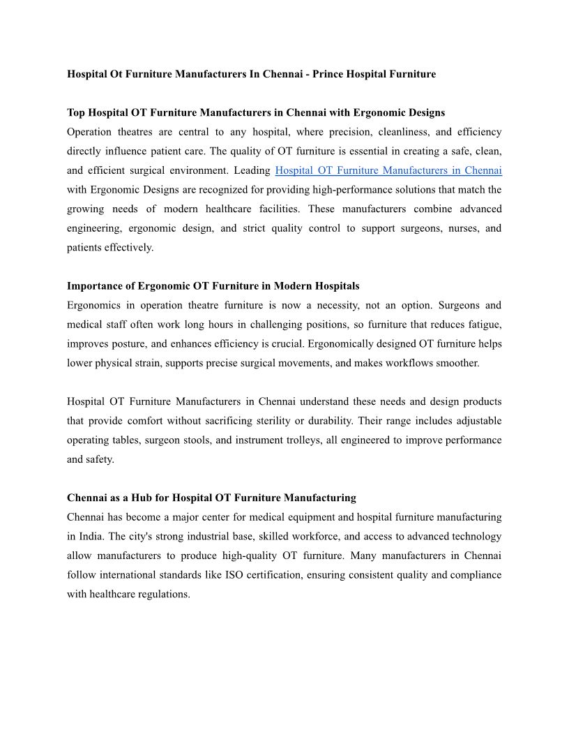 Top Hospital OT Furniture Manufacturers in Chennai with Ergonomic Designs