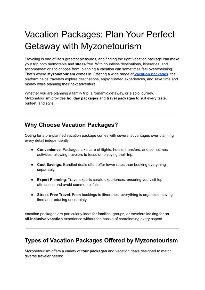 Vacation Packages for Every Trip | Myzonetourism Travel Deals
