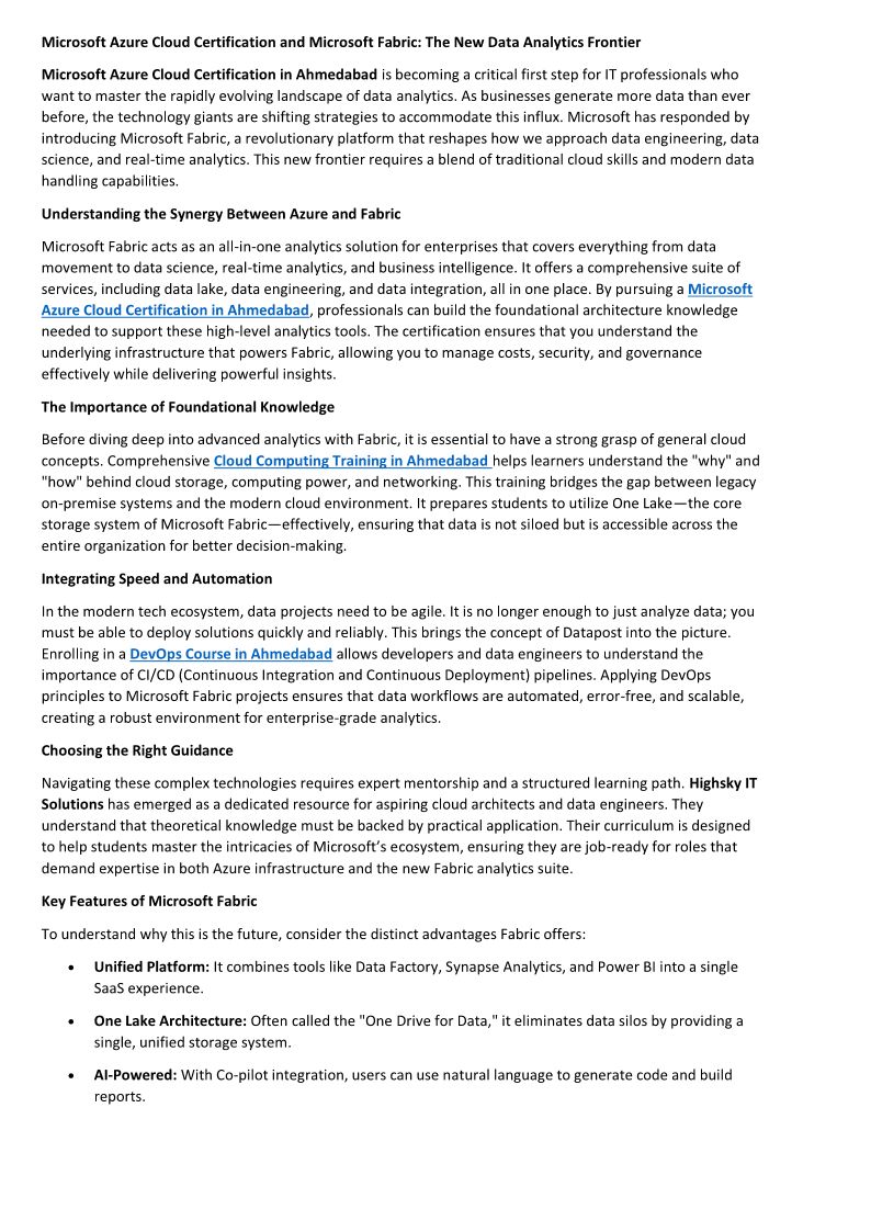 Microsoft Azure Cloud Certification and Microsoft Fabric The New Data Analytics Frontier