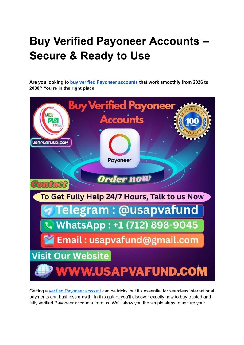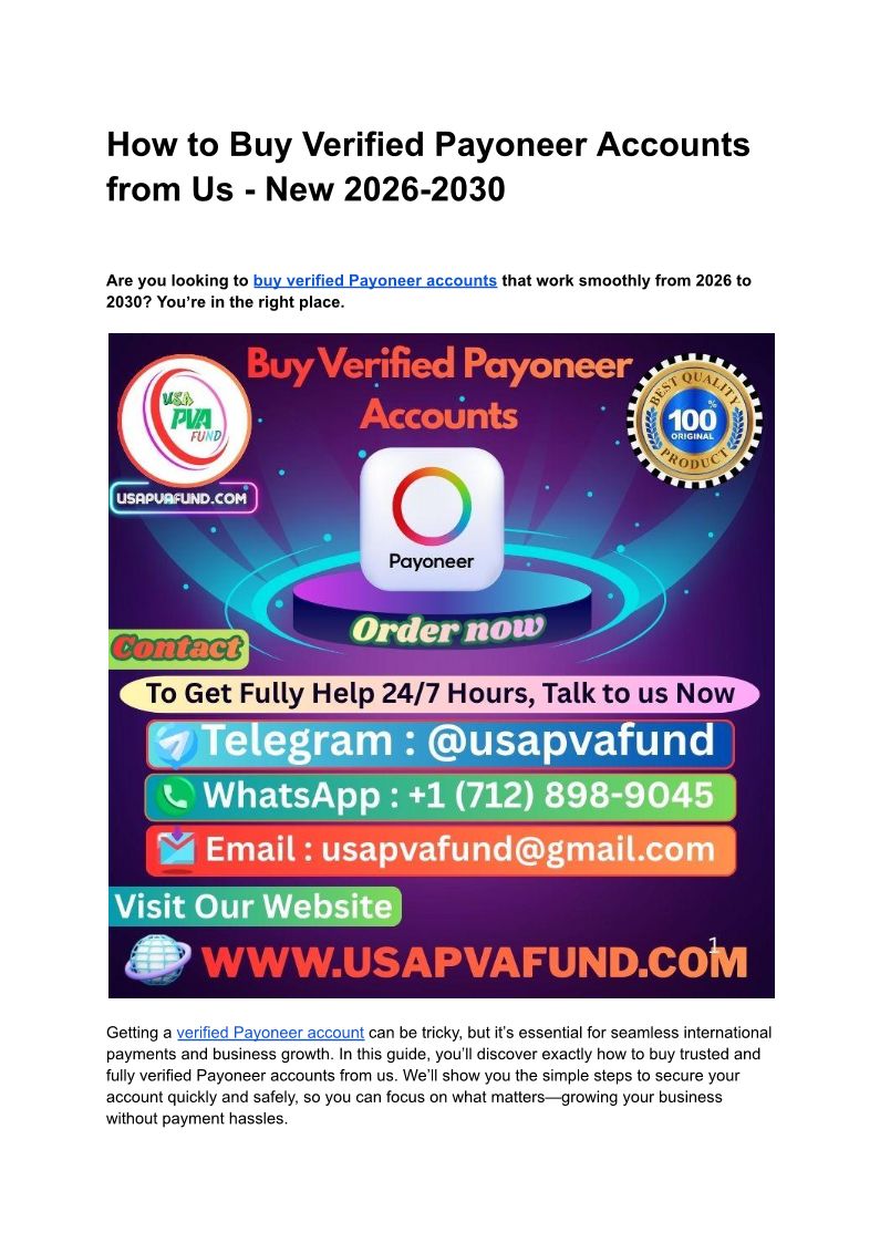 How to Buy Verified Payoneer Accounts from Us - New 2026-2030