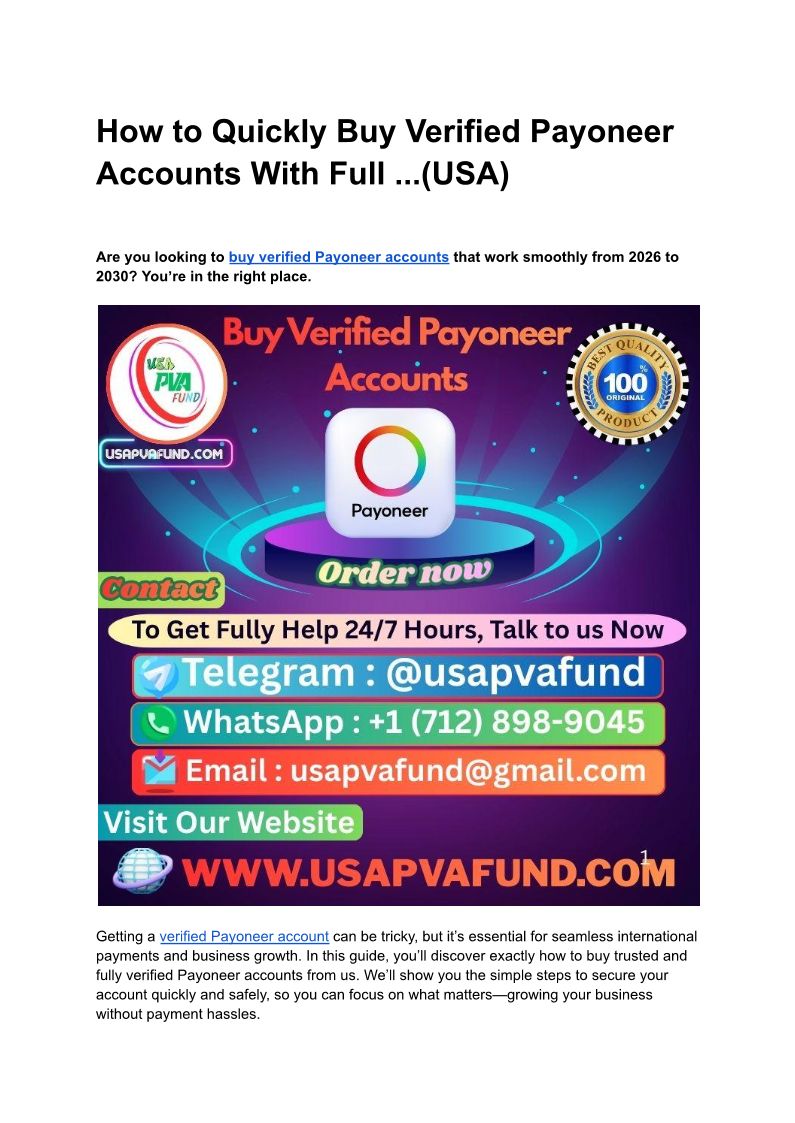 How to Quickly Buy Verified Payoneer Accounts With Full ...(USA)