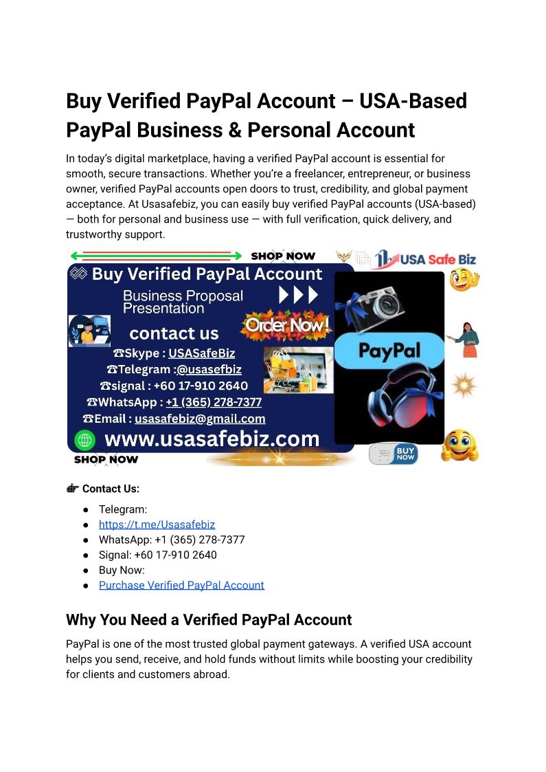 2Buy Verified PayPal Account – USA-Based PayPal Business & Personal Account