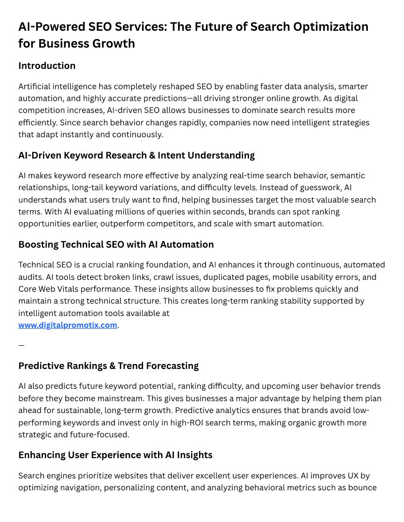 AI-Powered SEO Services: The Future of Search Optimization for Business Growth