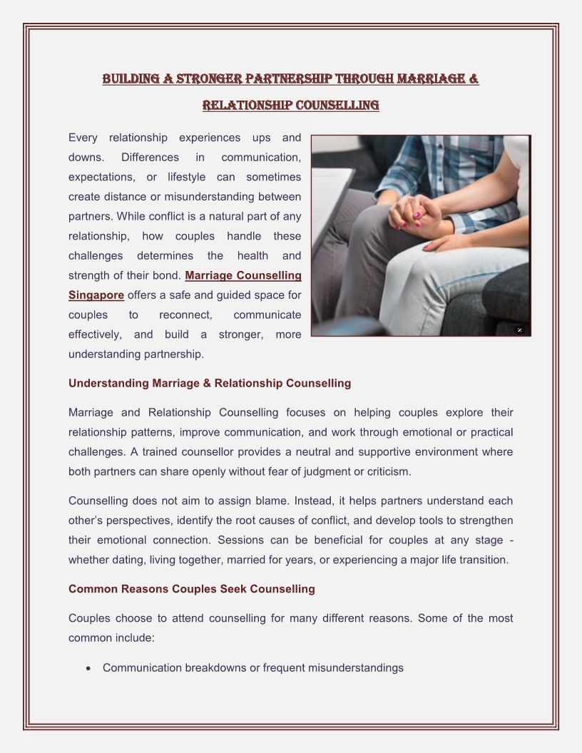 Building a Stronger Partnership through Marriage & Relationship Counselling