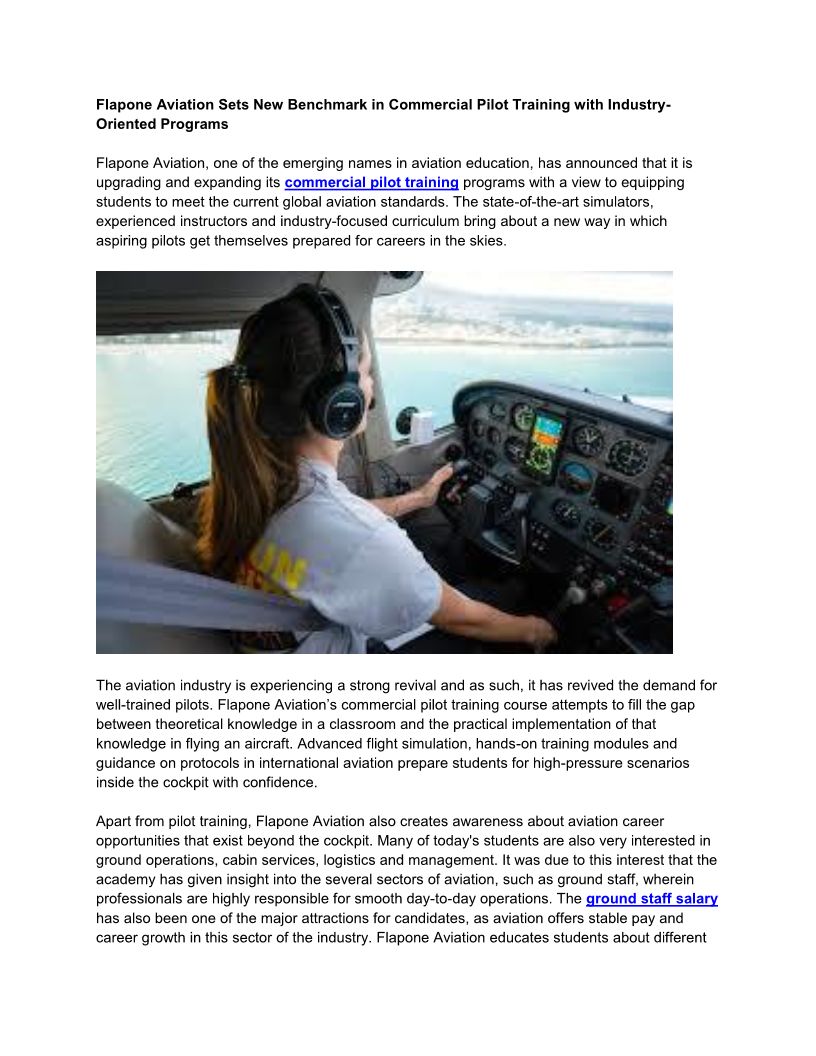 Flapone Aviation Sets New Benchmark in Commercial Pilot Training with Industry-Oriented Programs