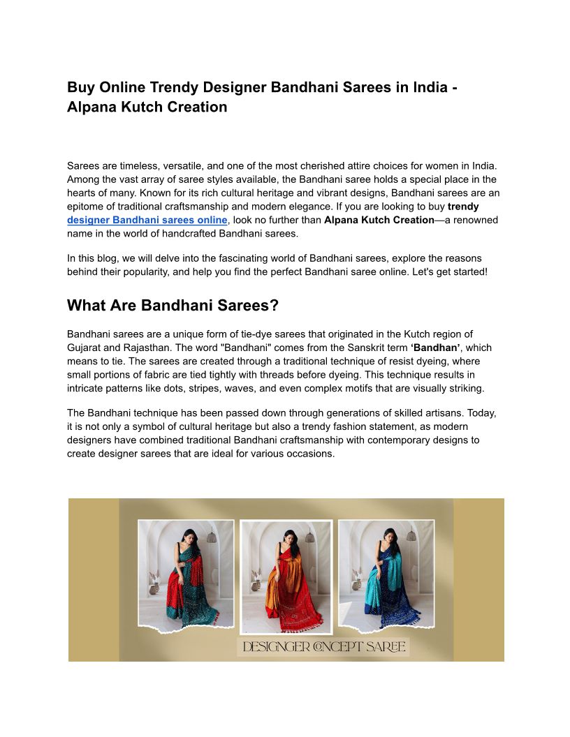 Buy Online Trendy Designer Bandhani Sarees in India - Alpana Kutch Creation