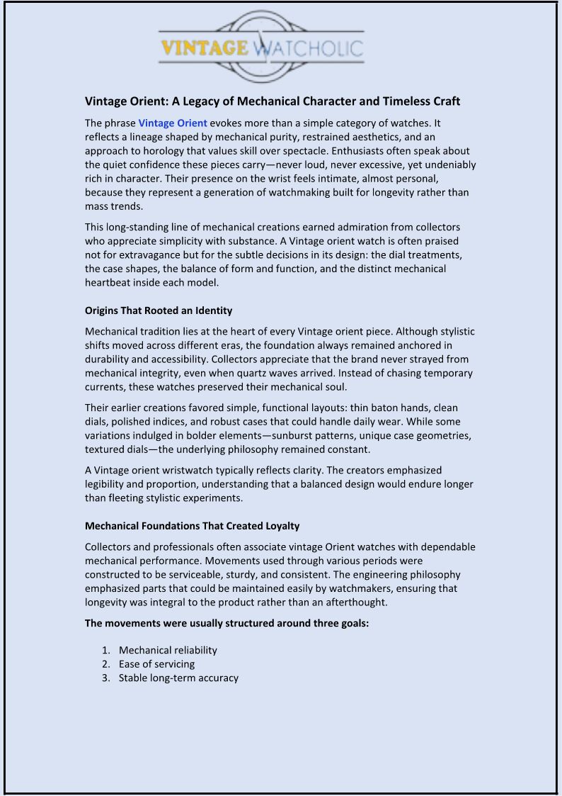 Vintage Orient and A Legacy of Mechanical Character and Timeless Craft