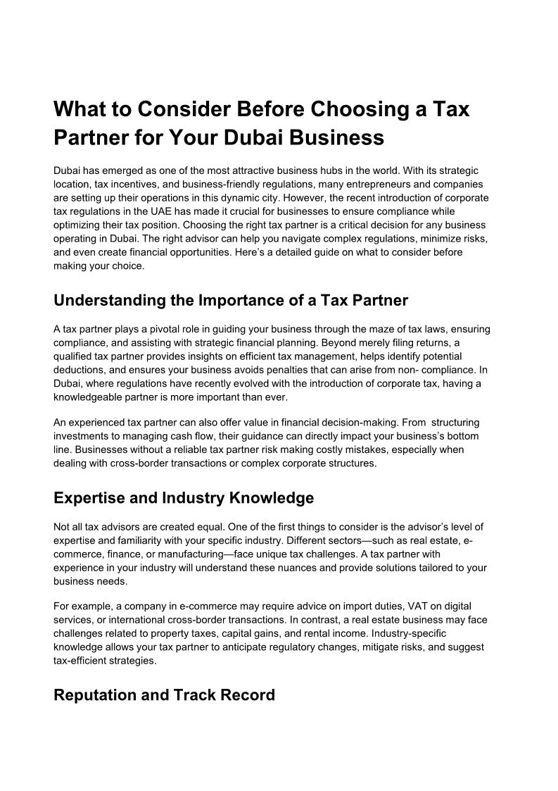 What to Consider Before Choosing a Tax Partner for Your Dubai Business