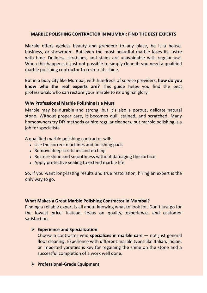 MARBLE POLISHING CONTRACTOR IN MUMBAI-FIND THE BEST EXPERTS