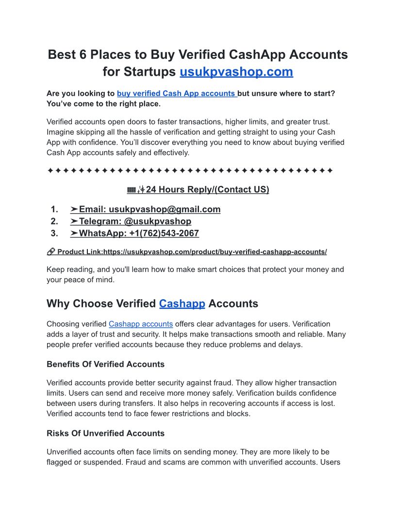 Best 6 Places to Buy Verified CashApp Accounts for Startups usukpvashop