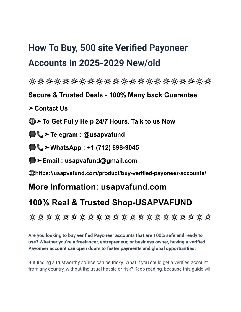 How To Buy, 500 site Verified Payoneer Accounts In 2025-2029 New_old