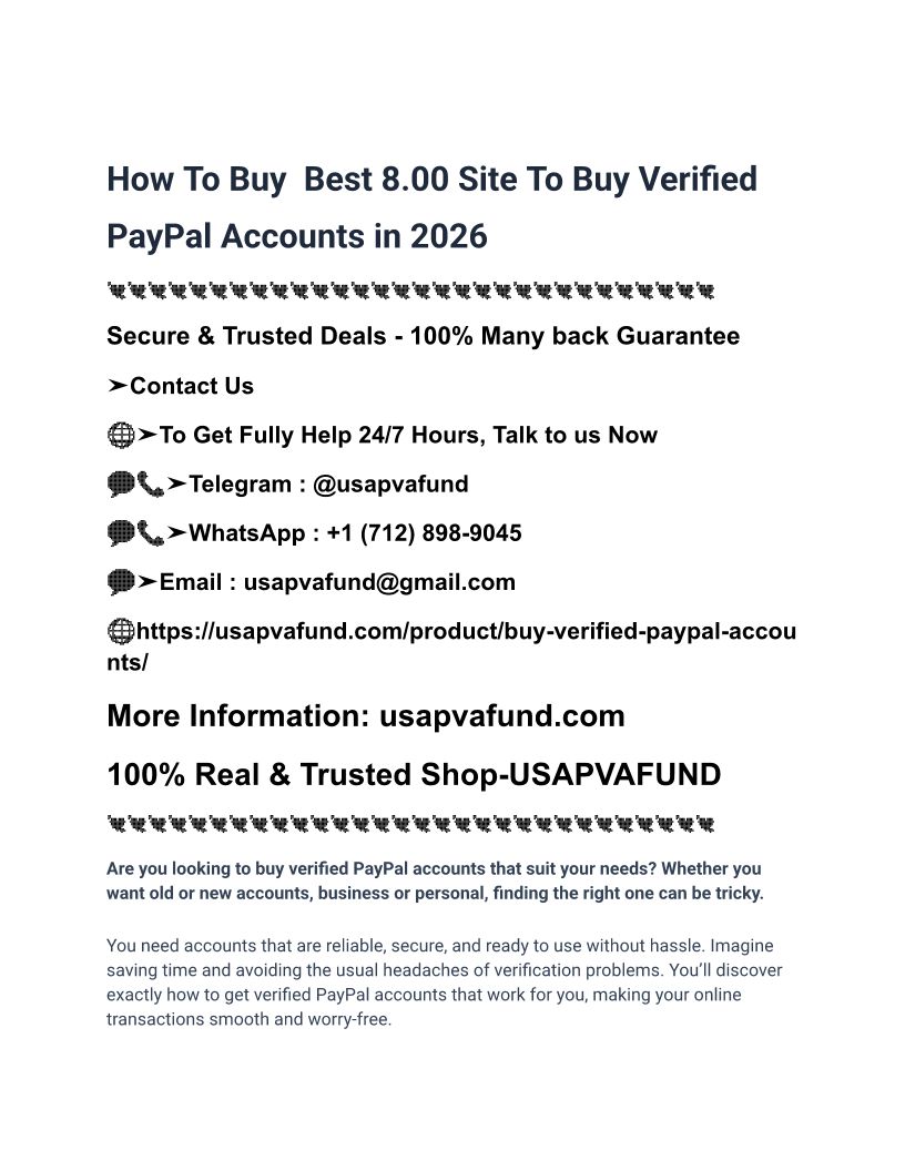 How To Buy Best 8.00 Site To Buy Verified PayPal Accounts in 2026